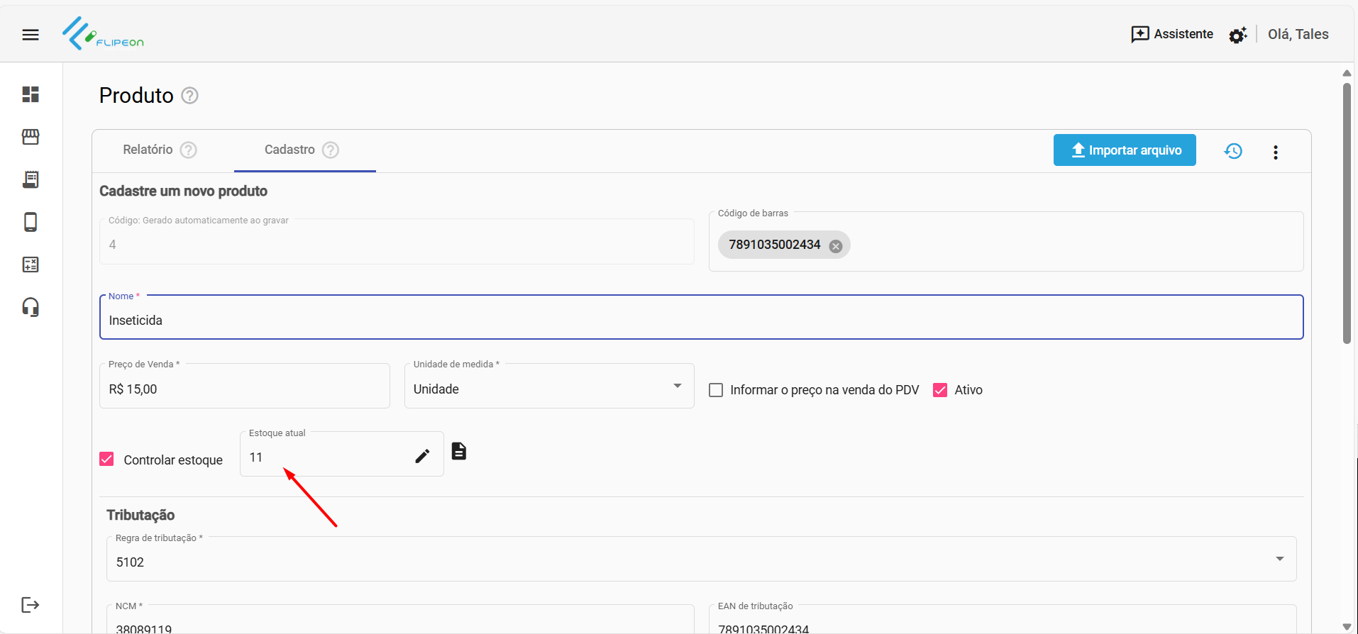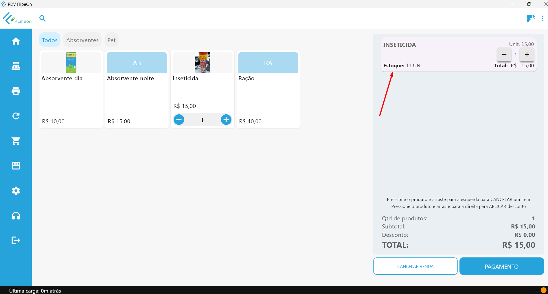 - No PDV na tela Venda após adicionar um produto na venda.