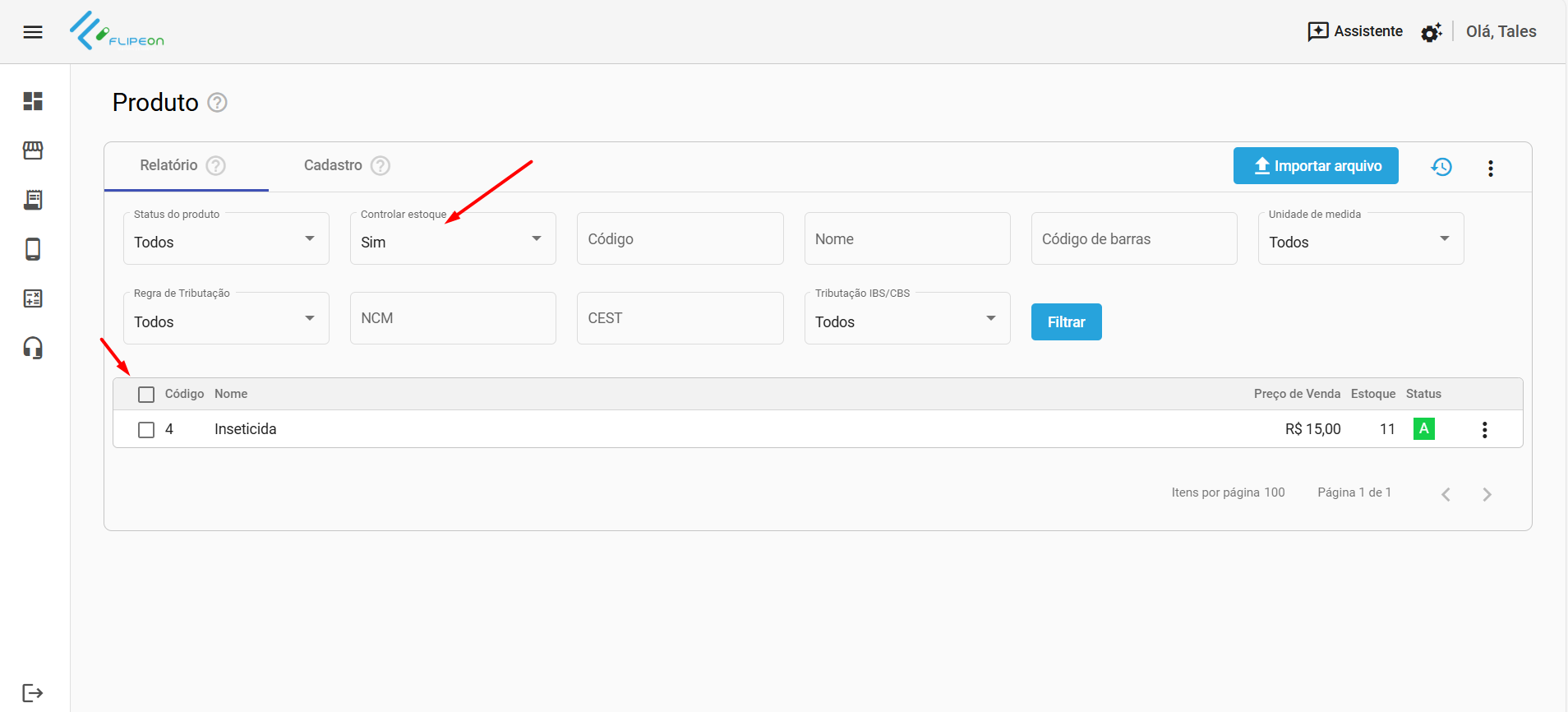 - A quantidade em estoque atual de cada produto estará na coluna Estoque da grade.