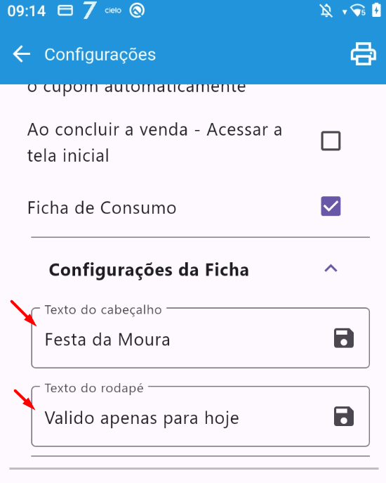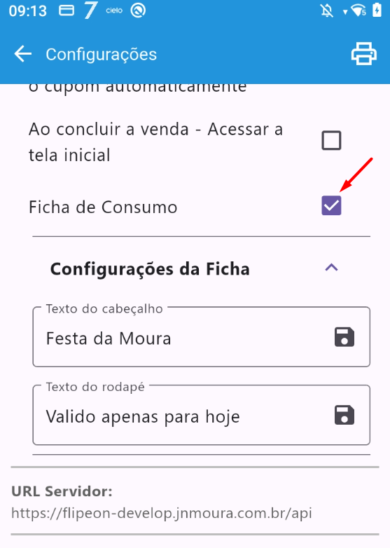 - A funcionalidade de Ficha de Consumo está disponível apenas para PDVs com impressora configurada para este tipo de impressão.