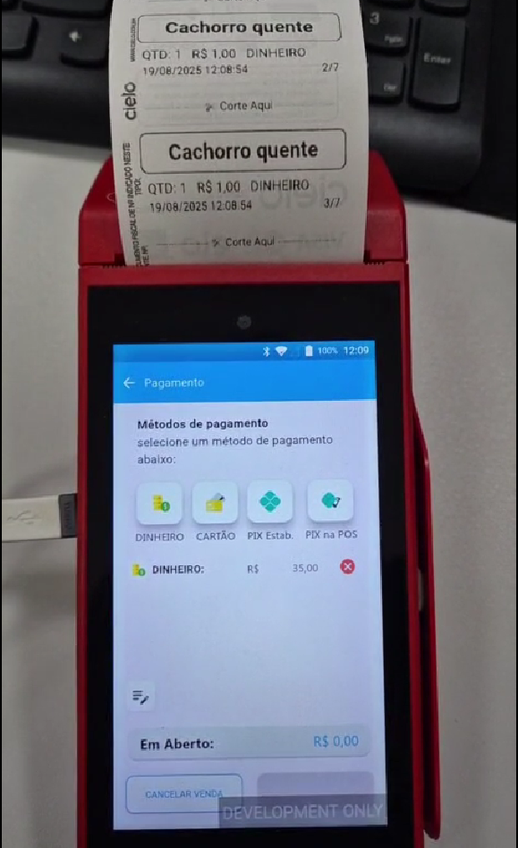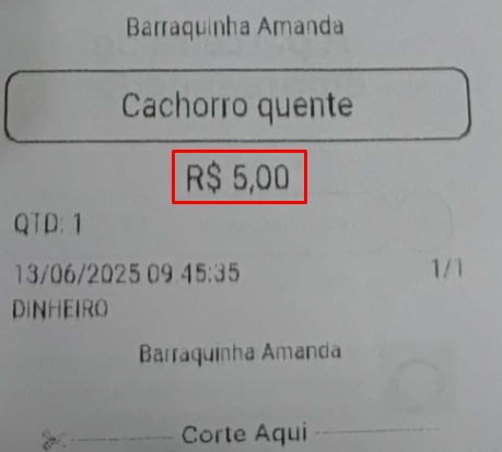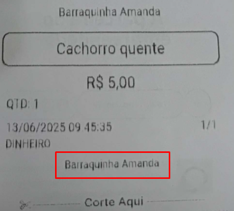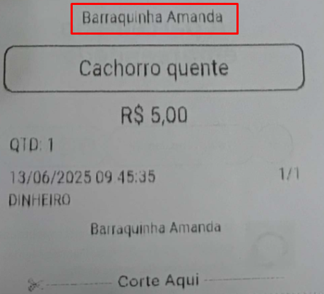 Cabeçalho: Texto configurável com o nome do evento ou nome da empresa. Exemplo: FESTA JULINA 2025 ou BAR DO ZÉ
