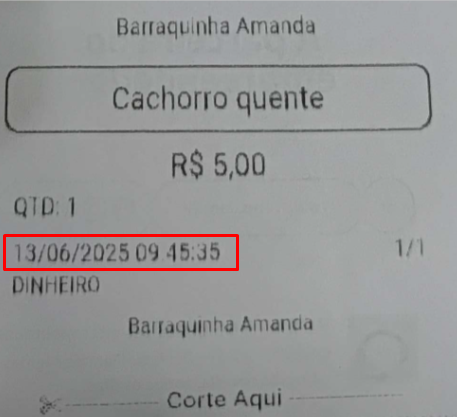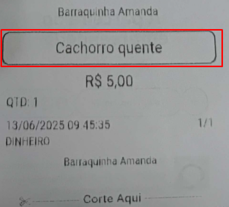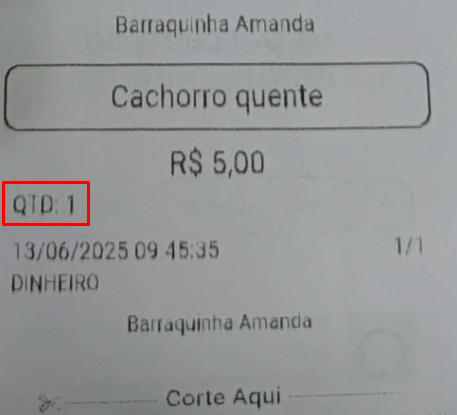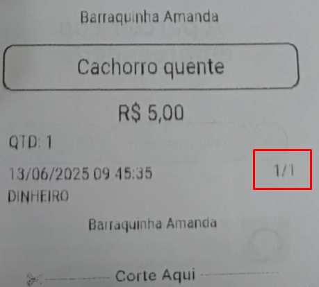 Número de impressão: É a sequência de fichas emitidas, que é definido pela quantidade de produtos da venda. Exemplo: Se comprou 3 CERVEJAS, serão impressas 3 fichas: a primeira ficha será emitido 1/3, a segunda 2/3 e a última 3/3.