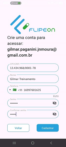- Preencha cada um dos campos e clique em Cadastrar;