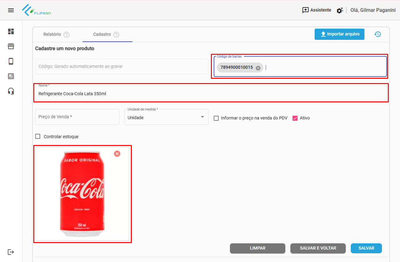 Cadastro de Produto pela imagem