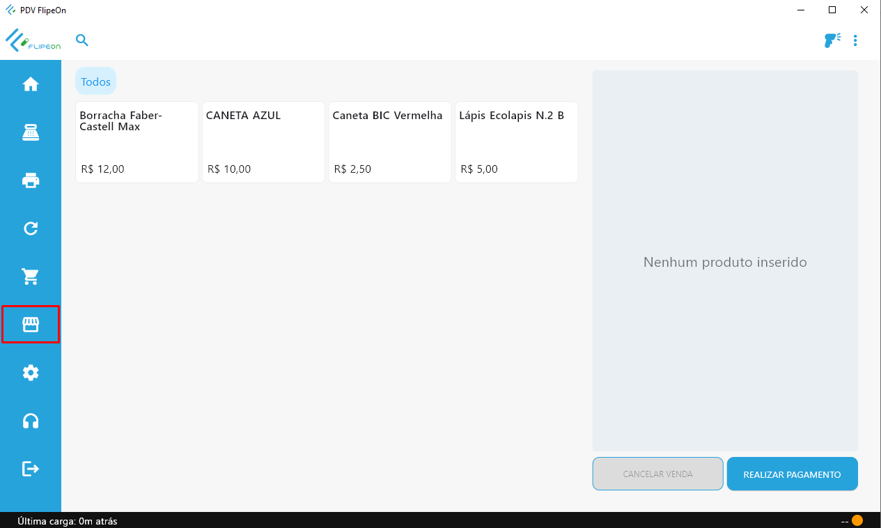 Após cadastrar o produto e sair da tela, o PDV faz uma carga automática dos produtos cadastrados.