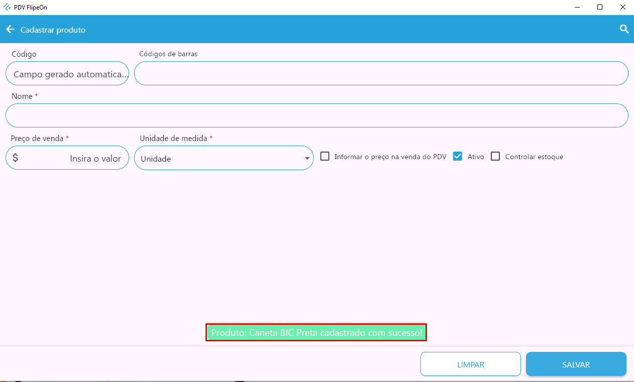 O cadastro de produto pelo PDV, seja no Windows ou no Mobile, é realizado da mesma forma que pelo Painel Administrativo no Web.