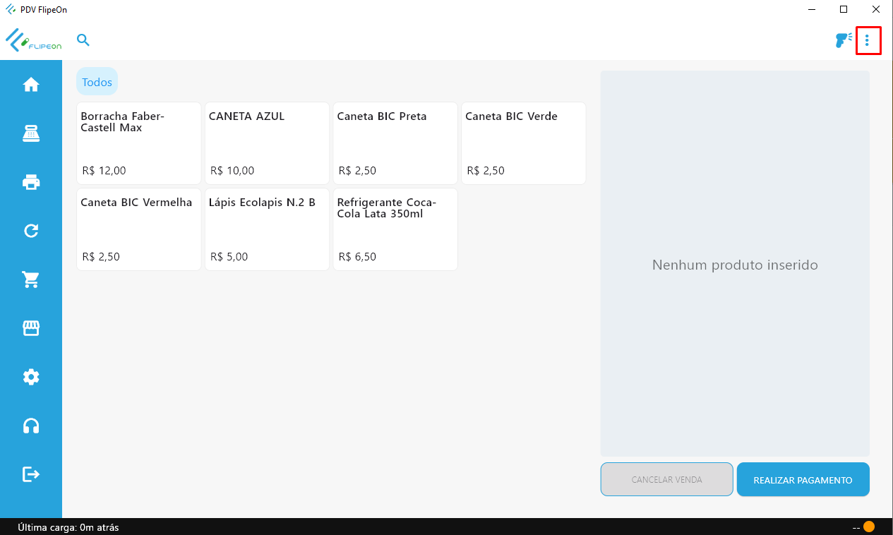 - Na tela principal do PDV, clique no botão 3 pontinhos.