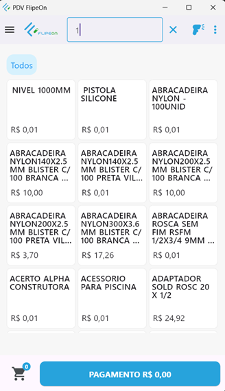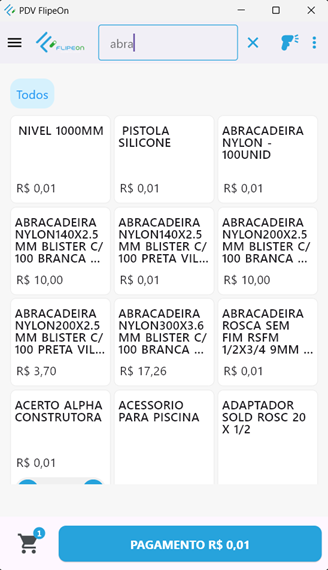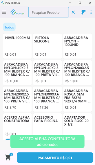 - Pressione sobre o produto na lista para adicioná-lo na venda