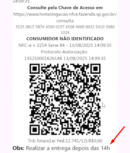 “Entregar apenas após as 18h.” - Informações combinadas com o cliente:
