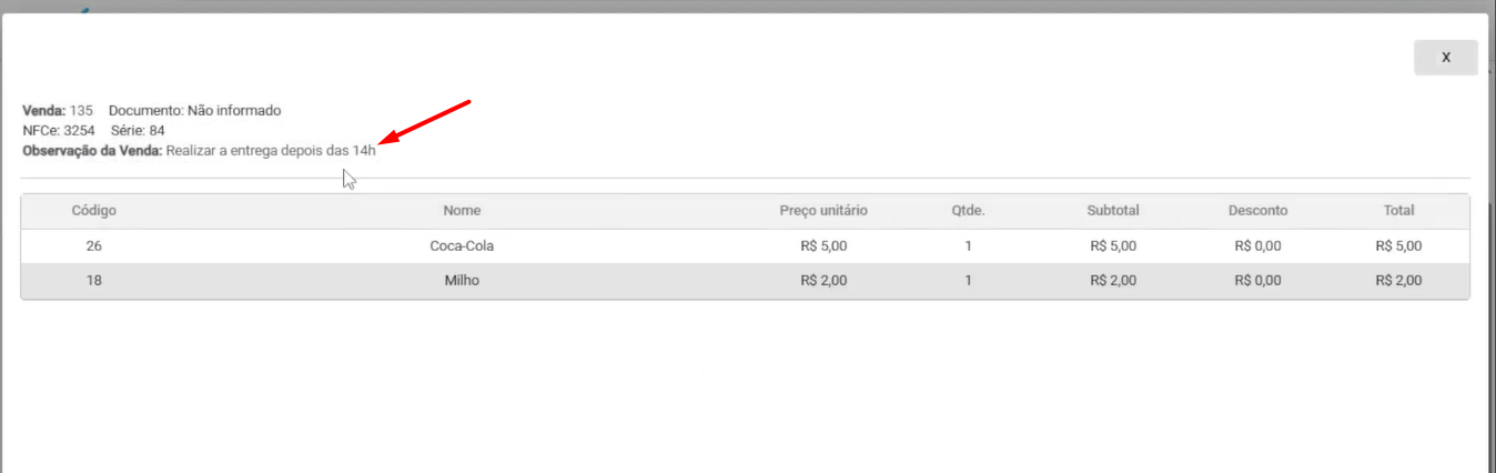 - Será possível ler a observação informada na venda no relatório de vendas no ícone de mais informações