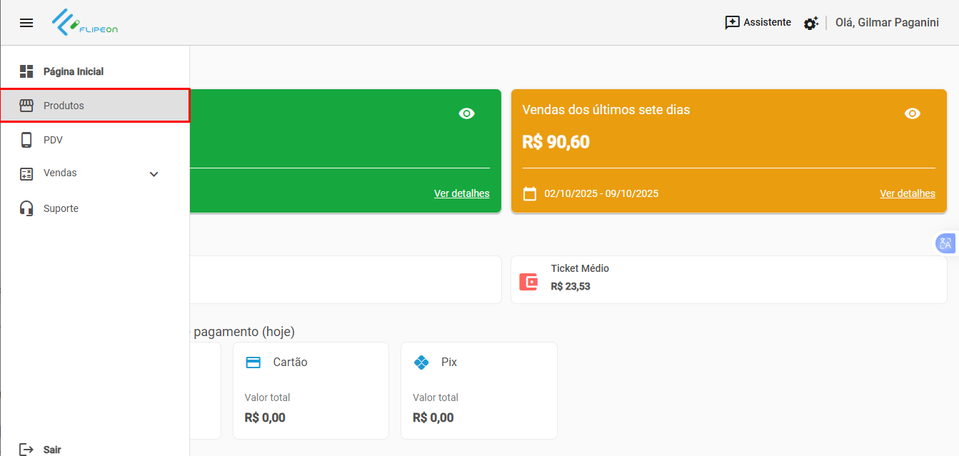 Na aba Relatório escolha o produto que será devolvido e clique no botão 3 pontinhos (...) no final da linha.